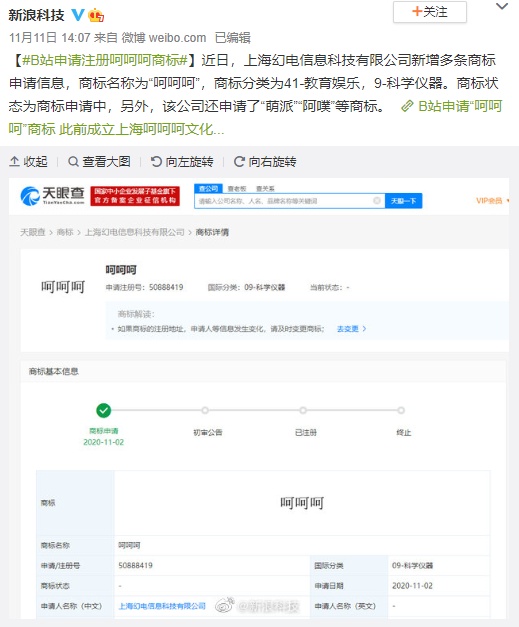 近日,B站因申请名称为“呵呵呵”的商标被曝光,因为商标过于无厘头从而迅速登上热搜。